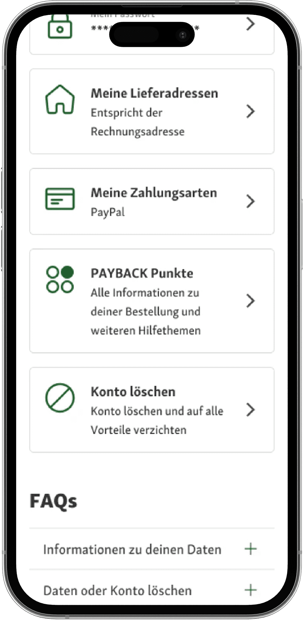 Die Option „Konto löschen“ wurde gut sichtbar und erreichbar im Nutzerprofil eingebettet. Ein Icon, klare Beschriftung und konsistente Position innerhalb des Menüs schaffen Orientierung und Sicherheit. So erkennen Nutzer sofort: Hier kann ich mein Konto vollständig und bewusst löschen – ohne Umwege.